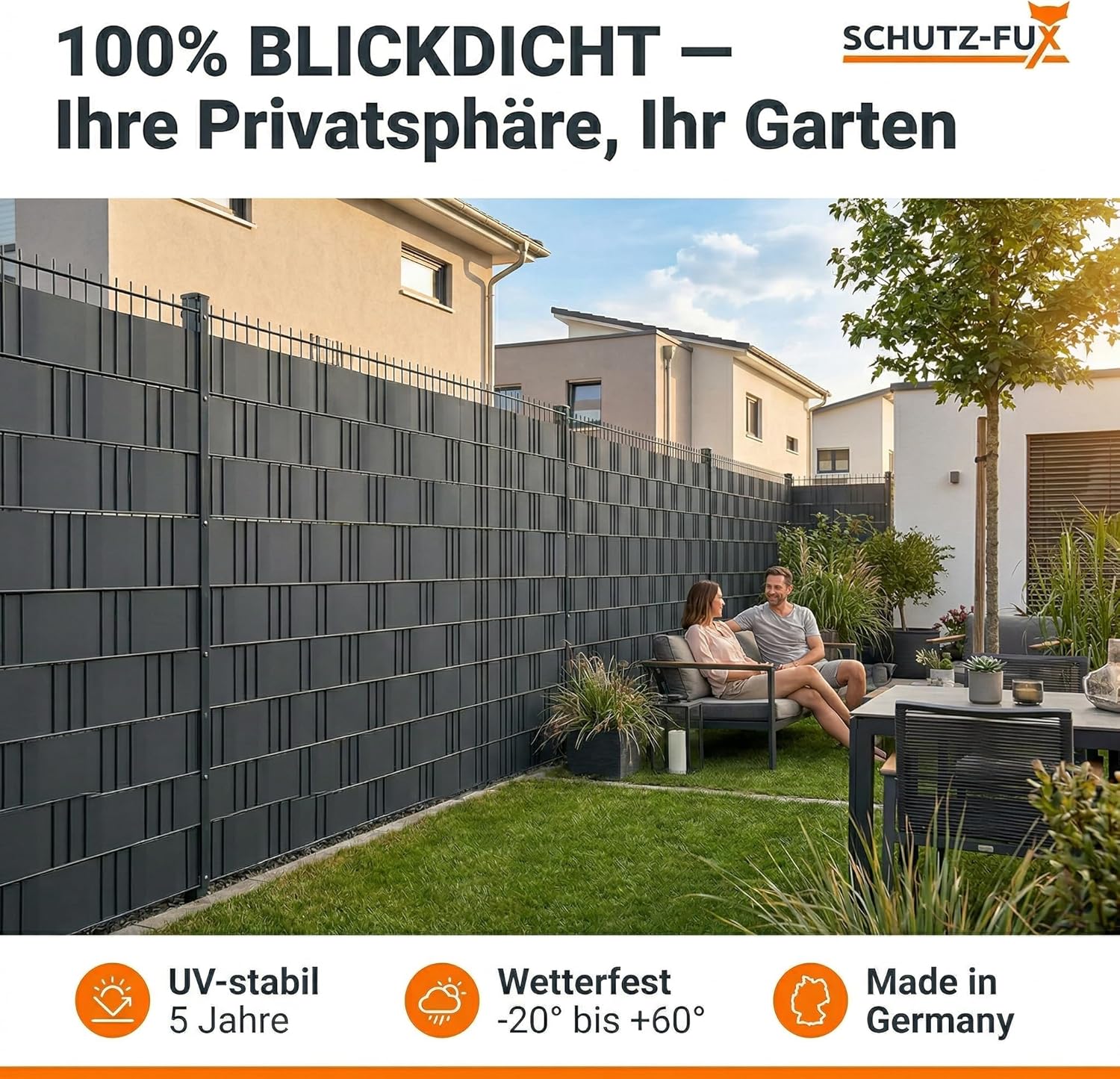 Unsere hochwertigen Sichtschutzstreifen bieten zuverlässigen Schutz vor neugierigen Blicken und sorgen gleichzeitig für eine moderne Optik deines Doppelstabmattenzauns.